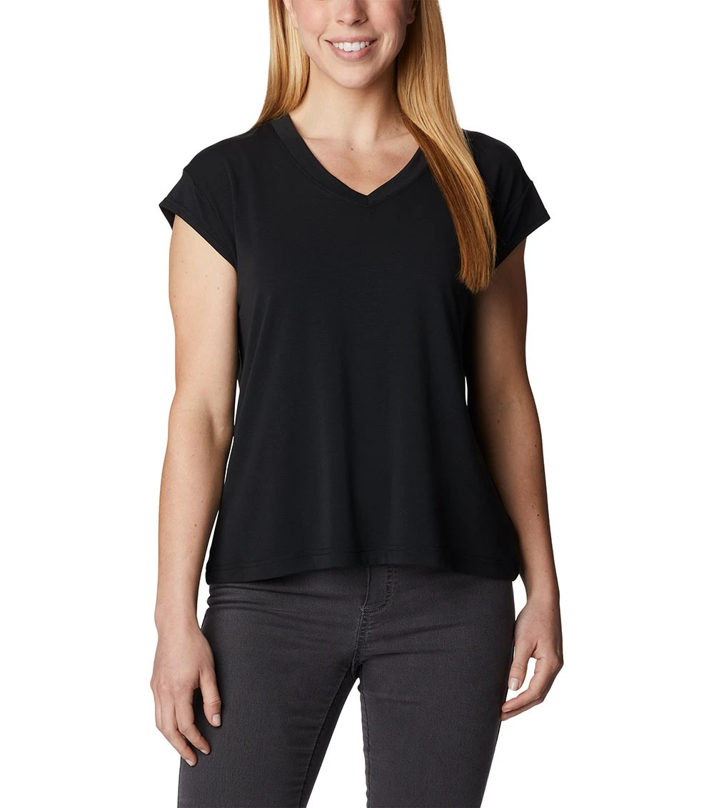 A classic V-neck tee with wicking, stretch fabric is ready for work, play,
