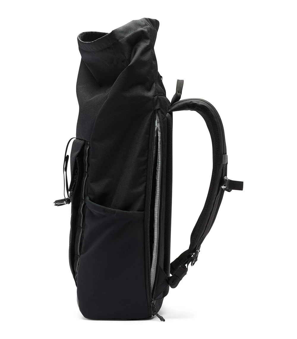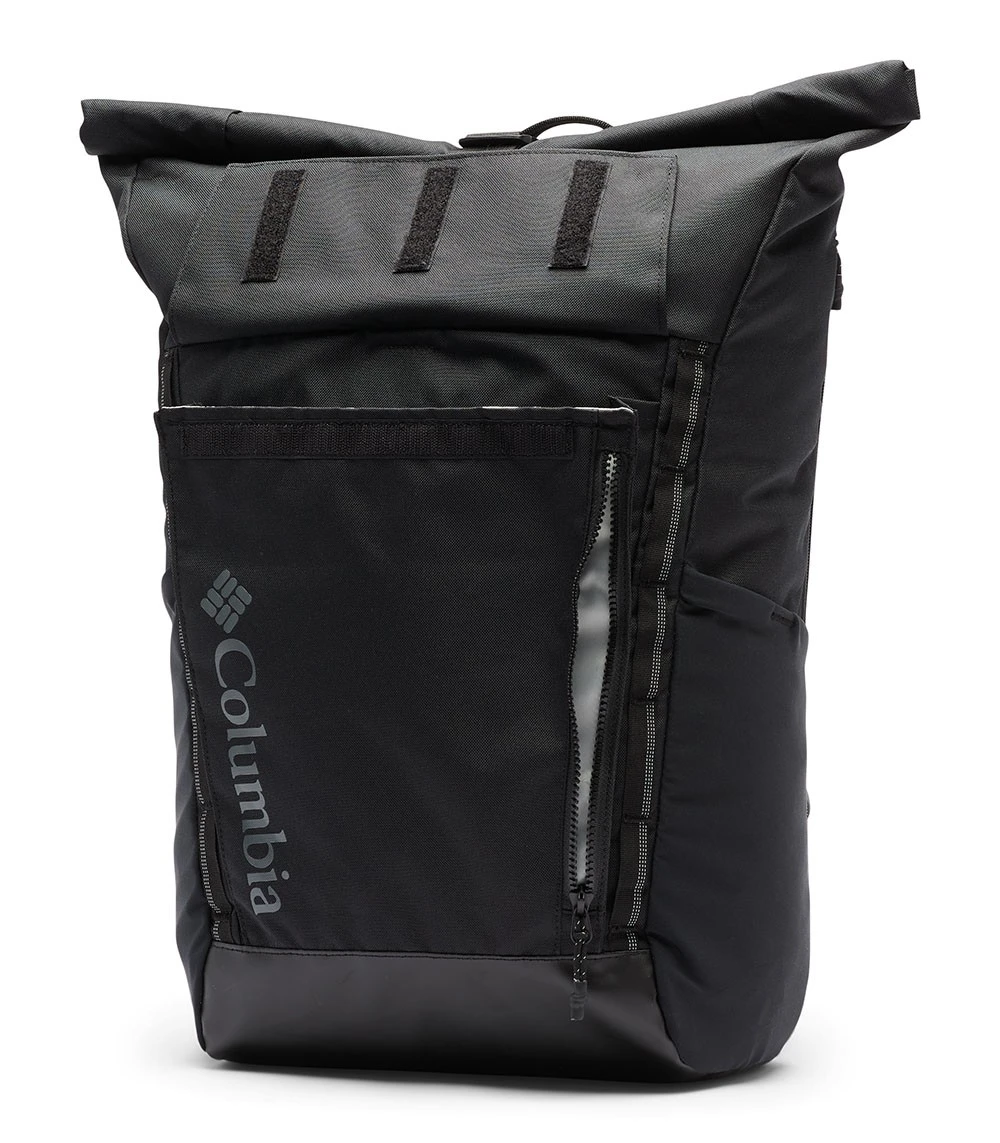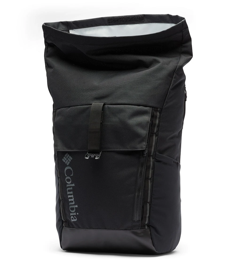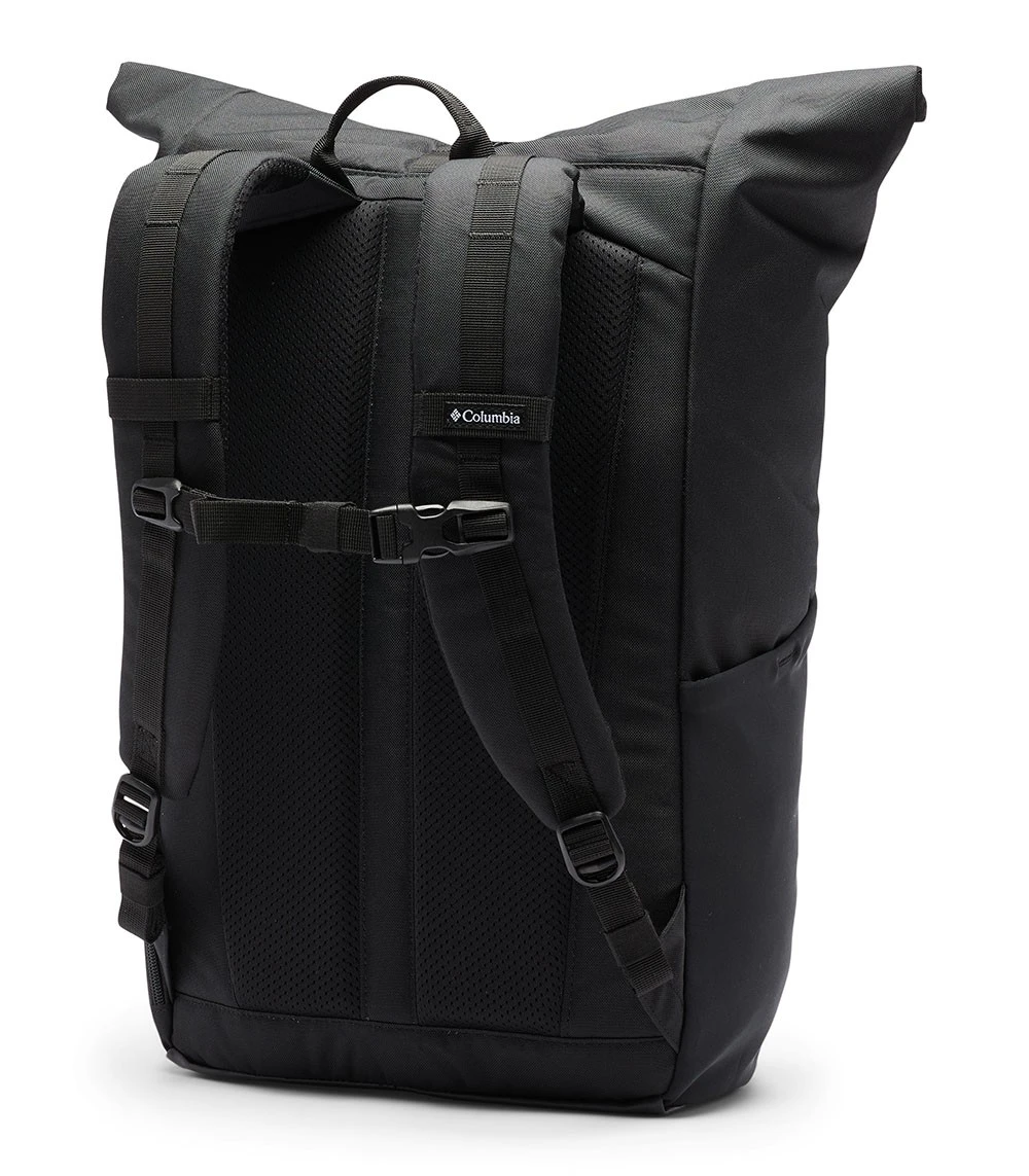 Made with a PU-coated fabric, this unisex 27L roll top backpack resists to