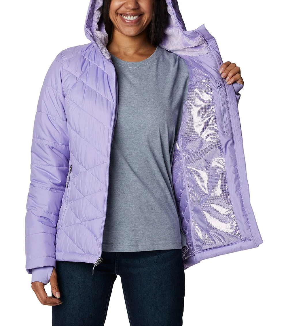 move. The women’s Heavenly Hooded Jacket combines a light yet toasty