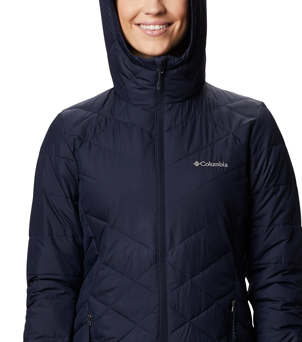 This hooded jacket’s thermal reflectivity and long hemline will keep you toasty.