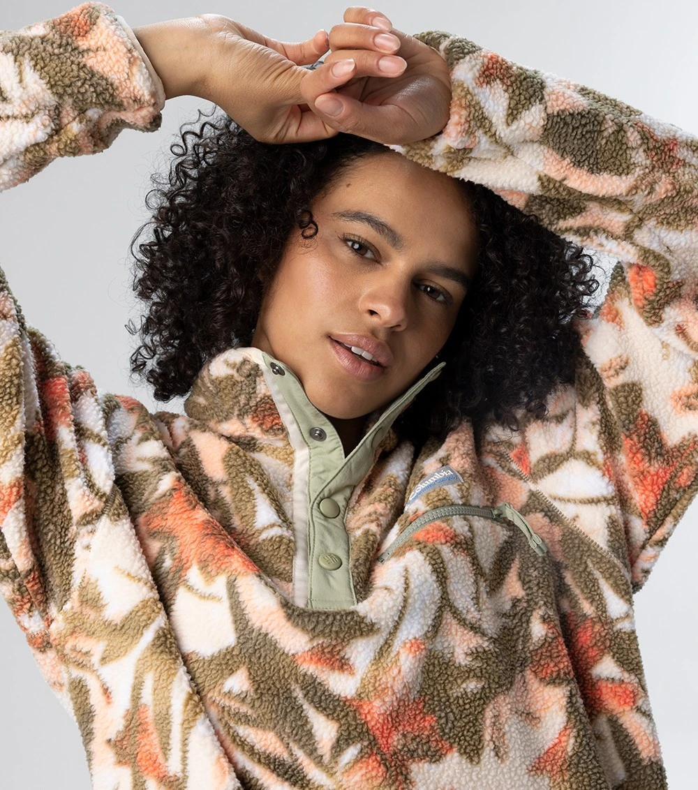 Crafted of soft teddy-bear-like Sherpa fleece, this cozy pullover features eye