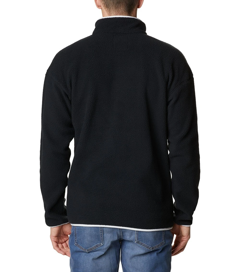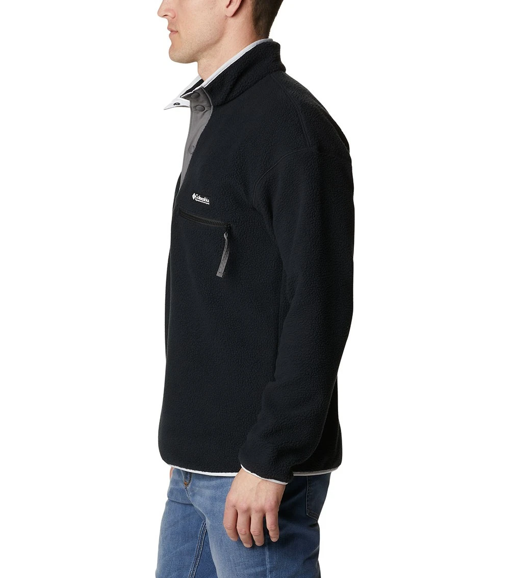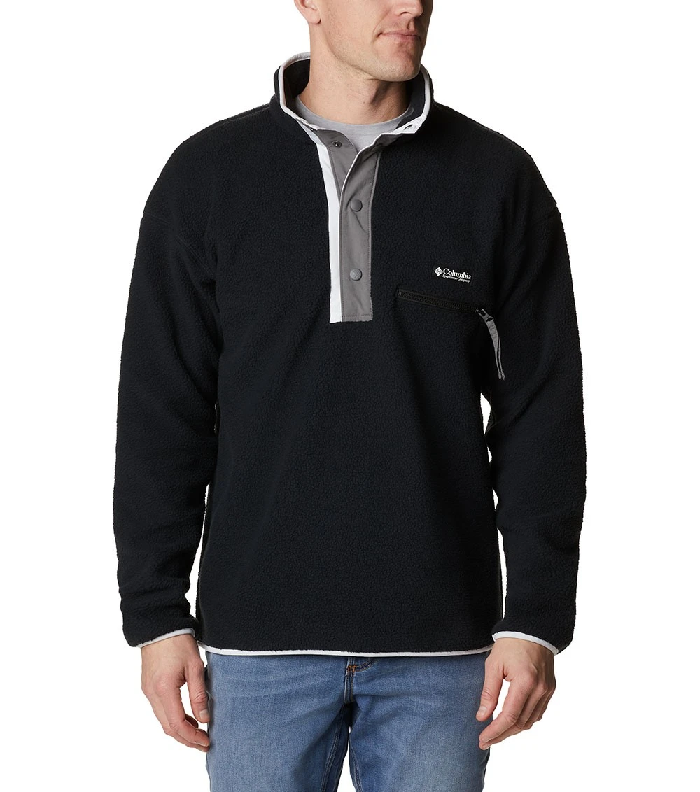 This cozy sherpa pullover stands out as a functional midlayer or sharp-looking