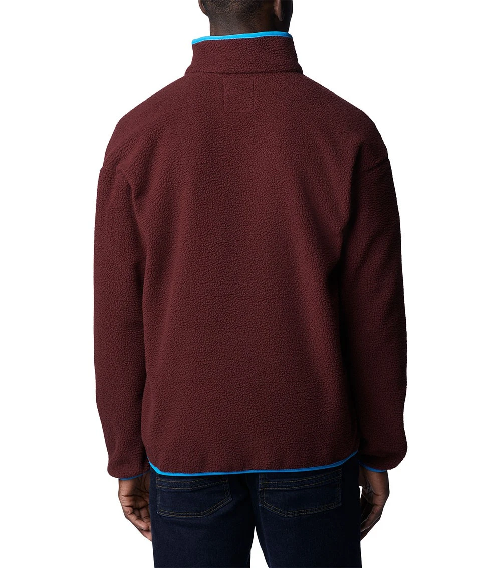 This cozy sherpa pullover stands out as a functional midlayer or sharp-looking