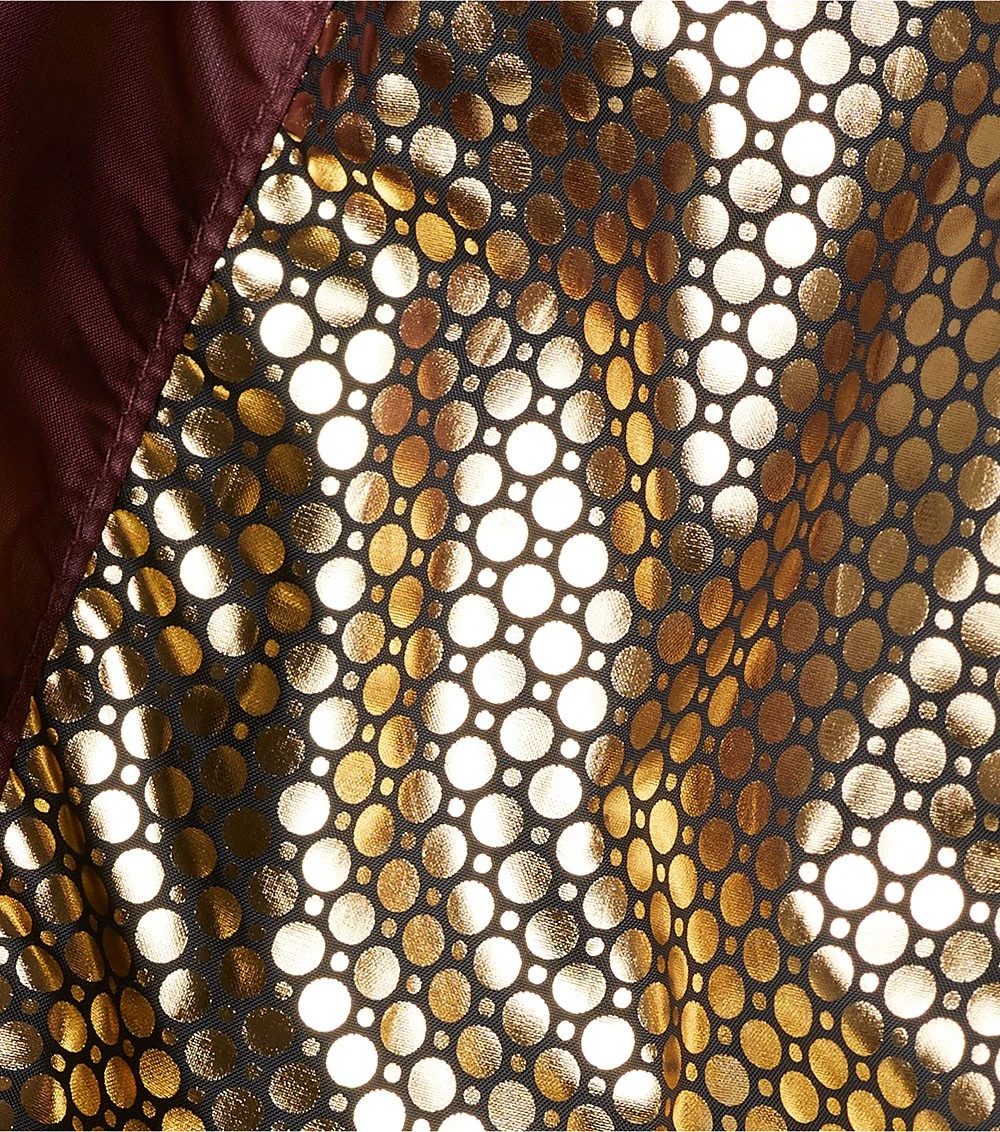A collar lined with plush fleece and a statement-making thermal-reflective gold