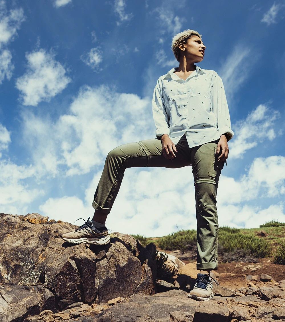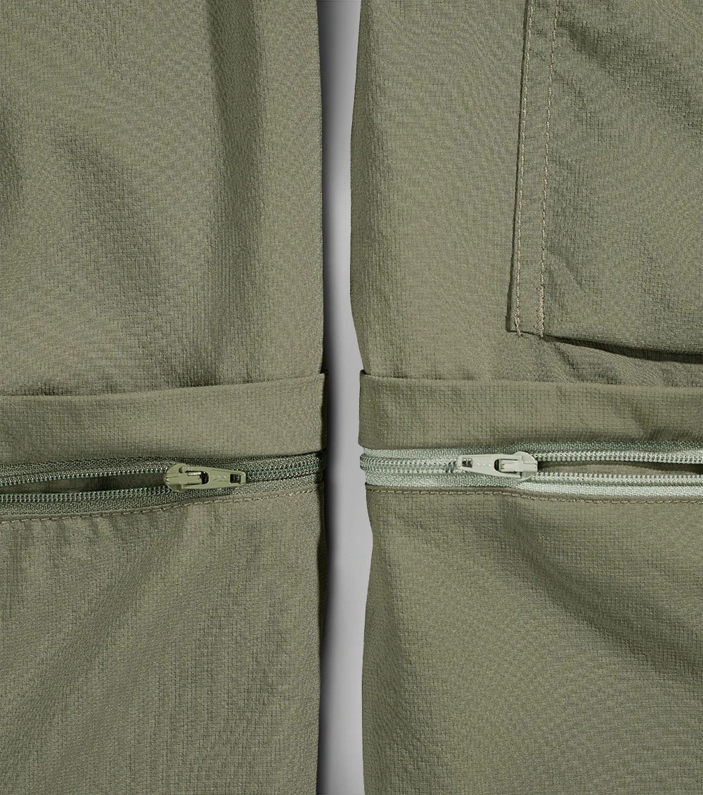 wicking, cargo pockets, and zip-off legs that convert to shorts.