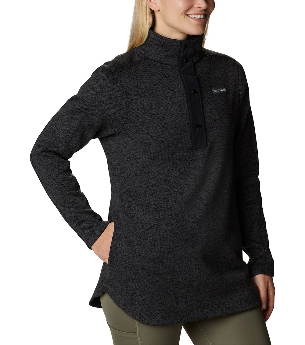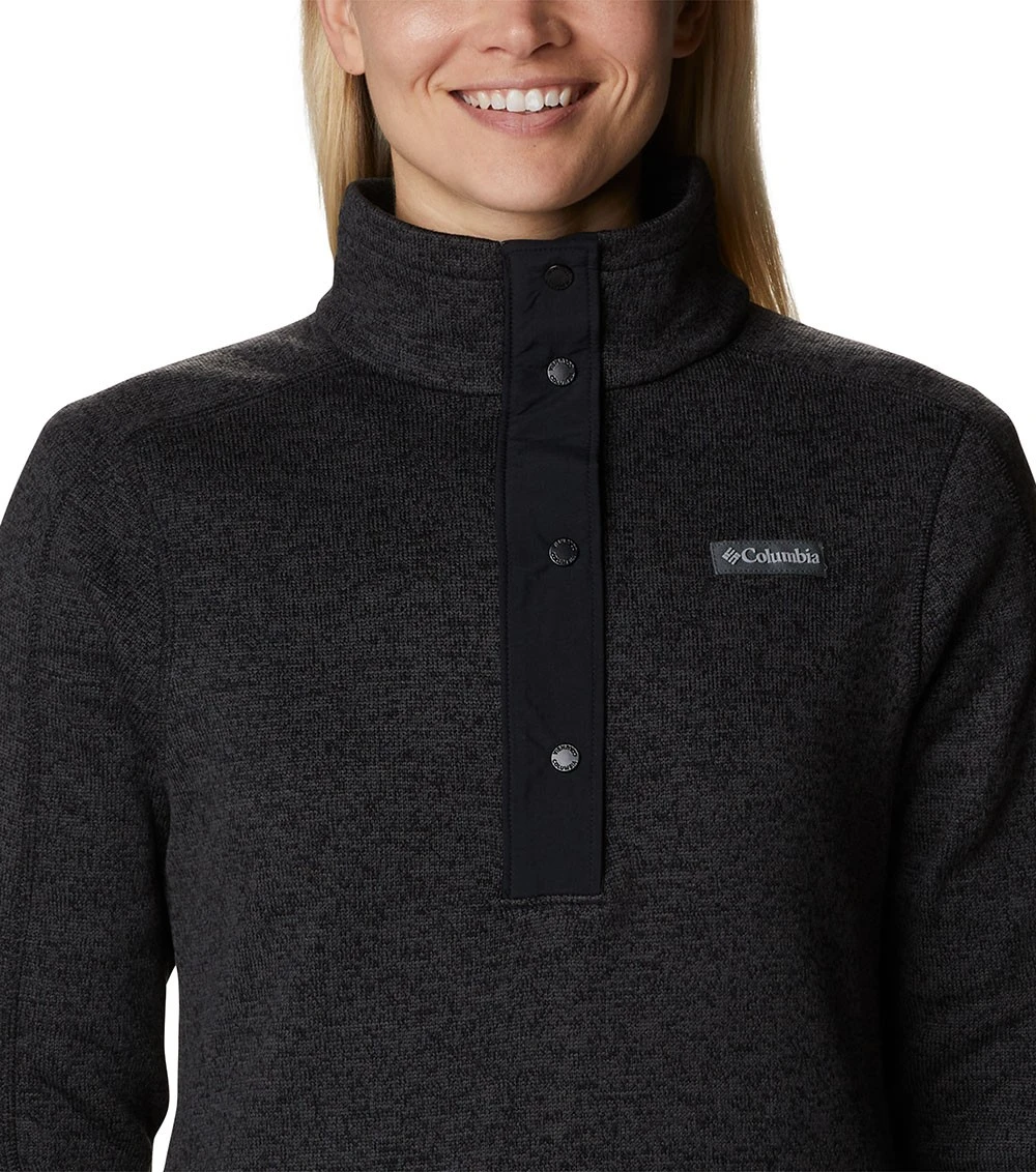 a super soft, half-snap fleece and a sweater-like knit texture.