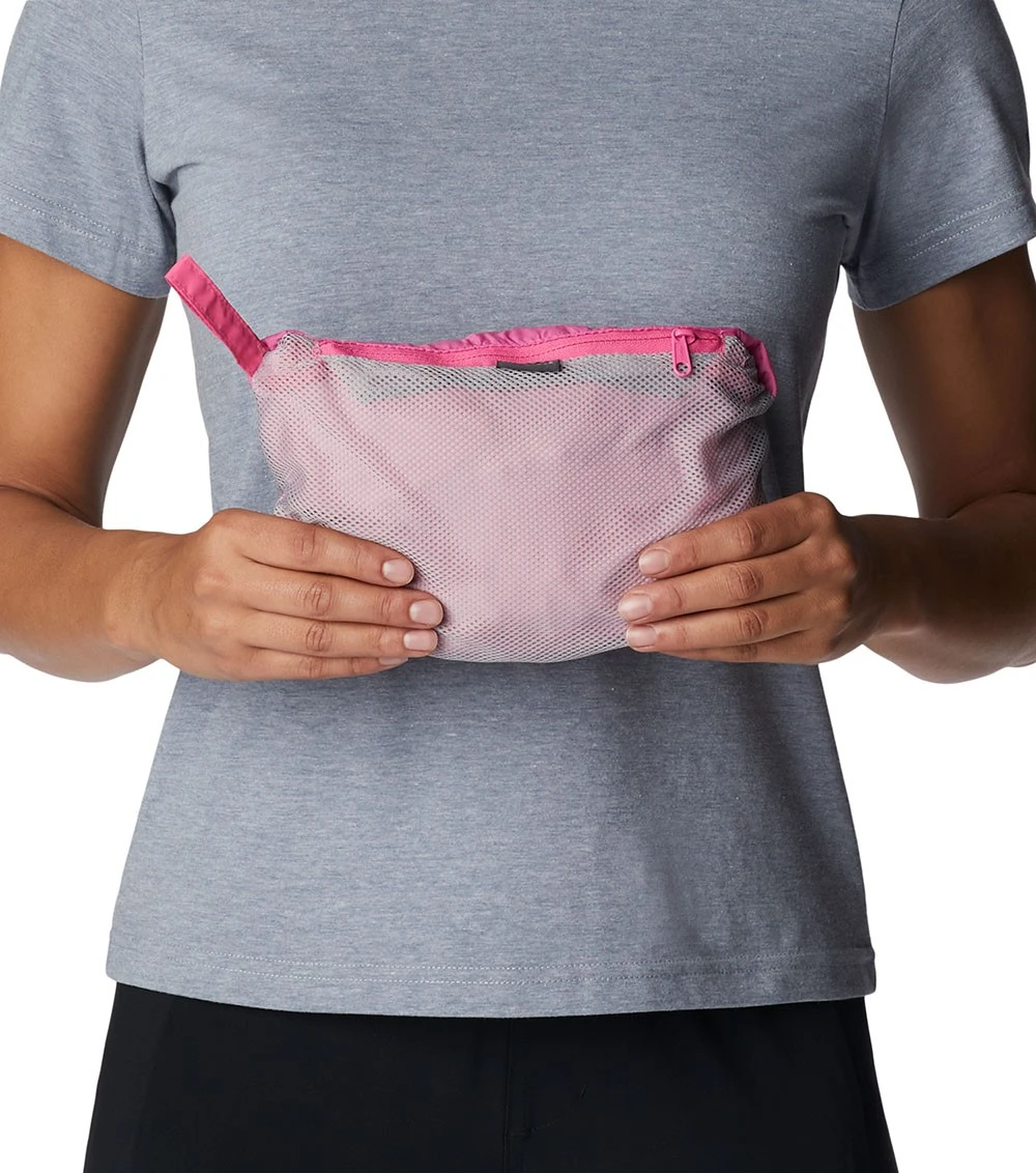 mesh lining, it’s light enough to fold into a pocket for easy storage. Zip